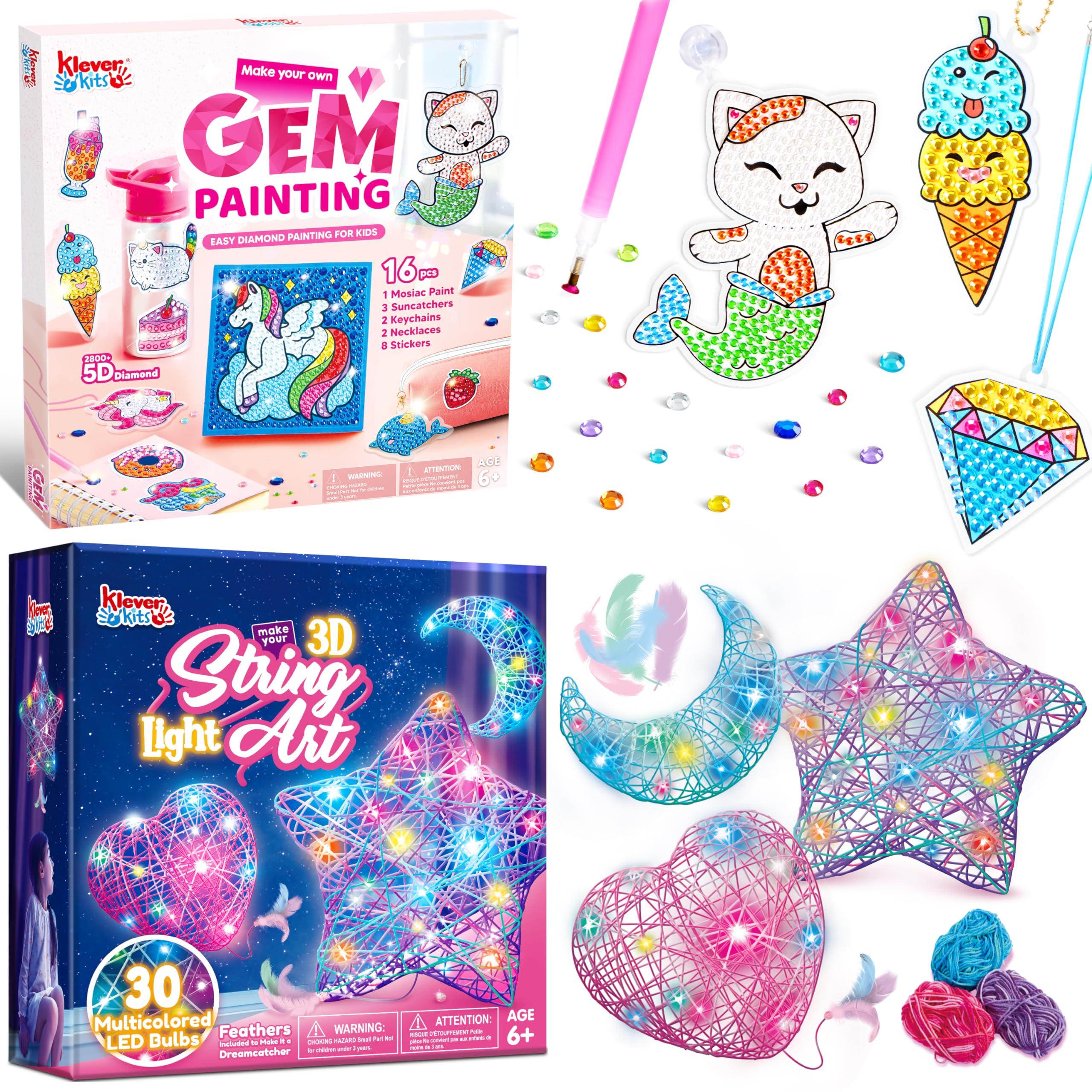 Klever Kits 3D String Art Kit and 16 Projects Gem Art Set for Kids, Mess-Free Arts and Crafts Kits, Make Your Own Light and Painting, Birthday Gifts for Girls and Boys Ages 6-12